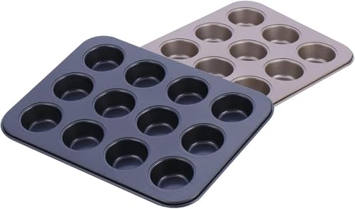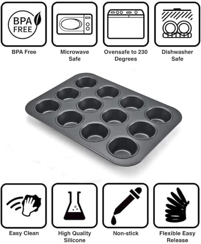 Generic - قالب كب كيك جرانيت 12 فتحة غير لاصق لتحضير حلويات سهلة وسريعة تصميم عالي الجودة مقاوم للالتصاق والتنظيف