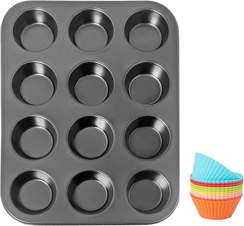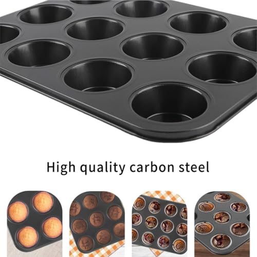 Generic - قالب كب كيك جرانيت 12 فتحة مقاوم للالتصاق تصميم عملي عالي الجودة لتحضير الحلويات بسهولة وسرعة تنظيف ممتاز
