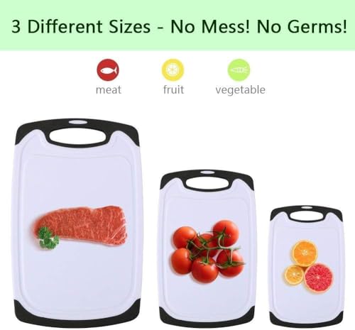 - ✅【تعدد المقاسات】يشمل الطقم 3 ألواح تقطيع مختلفة المقاسات لتناسب جميع احتياجات المطبخ من التحضير البسيط للخضروات والفواكه إلى تقطيع اللحوم والدواجن الكبيرة، مما يمنحك حرية اختيار الحجم الأمثل لكل مهمة ويجعل عملية الطهي أسرع وأكثر تنظيماً دون الحاجة لتغيير الأدوات بشكل متكرر. 🔪