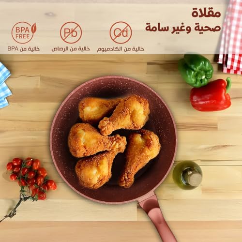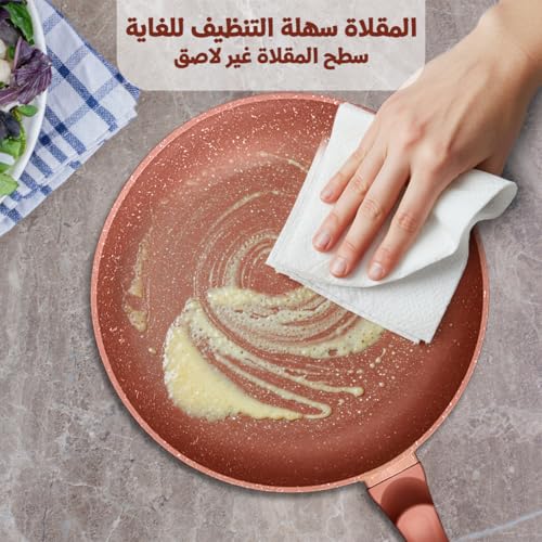 Generic - طقم طاسات قلي جرانيت سهلة التنظيف، طقم أواني للطهي بطلاء غير لاصق خال من حمض بيرفلورو الأوكتانويك (PFOA) وخالي من مادة بيسفينول أ والرصاص والكادميوم، مناسبة لبوتاجاز الغاز مع لمسة ناعمة (26 سم)