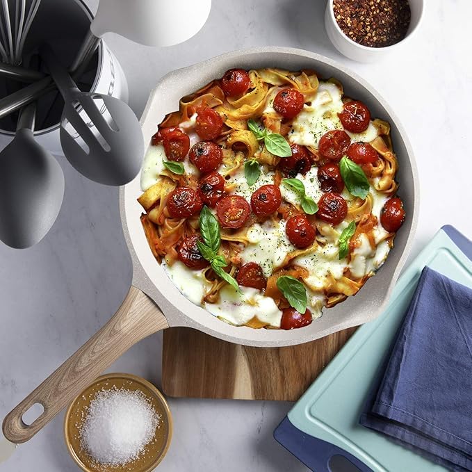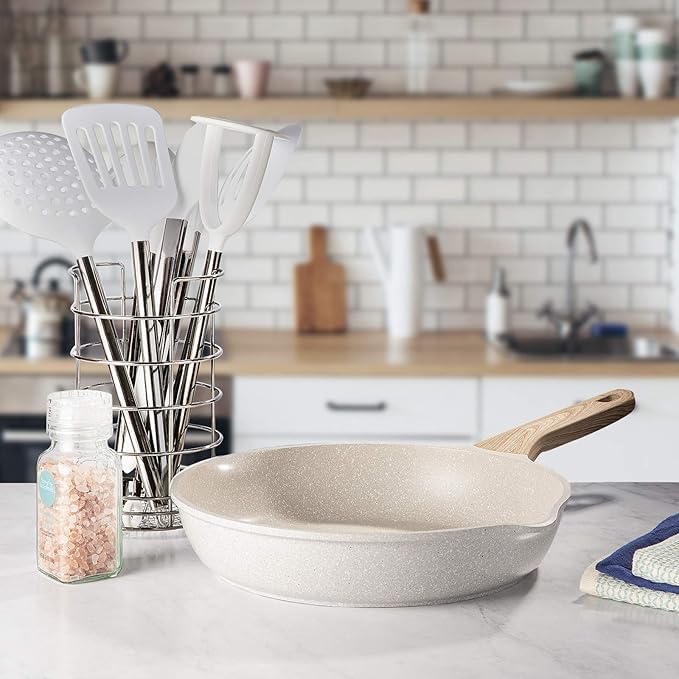 - سطح غير لاصق: الطلاء المستوحى من الجرانيت يساعد على منع التصاق الطعام، مما يجعل الطهي والتنظيف أسهل.