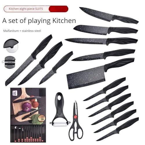 • طقم سكاكين جرانيت مكون من 18 قطعة، مما يوفر مجموعة كاملة للاستخدام في المطبخ.