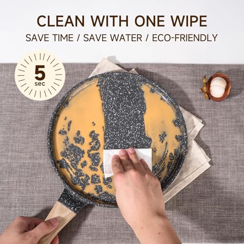 - 【سهل التنظيف والصيانة】وفر الوقت مع سطح غير لاصق بشكل طبيعي يمنع تراكم البقايا ويسمح بالتنظيف بدون مجهود، ويحافظ على النظافة واللمسة النهائية الناعمة للمقلاة لسنوات، حتى تتمكن من الاستمتاع بصيانة المطبخ بدون إجهاد مع الحفاظ على أواني الطبخ الخاصة بك تبدو نقية وأداء في أفضل حالاتها