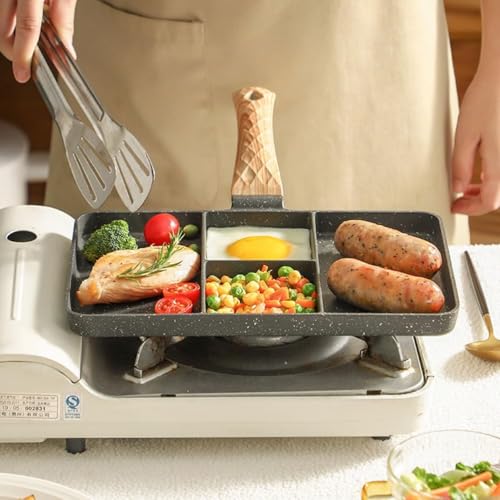 - ✅【تصميم رباعي الأقسام】تمتاز الطاسة بقدرتها على فصل الطعام في أربعة أقسام مستقلة، مما يتيح لك تحضير عدة وجبات في وقت واحد دون مزج النكهات، وهو مثالي لإعداد وجبات الإفطار السريعة مثل البيض، البان كيك، والبرجر، مما يوفر الوقت ويجعل إدارة المطابخ اليومية أسهل وأكثر تنظيمًا دون الحاجة لاستخدام أكثر من طاسة واحدة. 🍳
