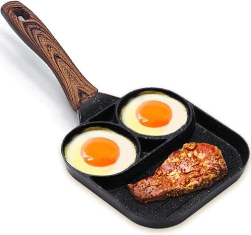 Generic - طاسة جرانيت 3*1 مع يد خشب، تصميم مبتكر وعملي لتحضير البيض، العجة والبان كيك في طاسة واحدة