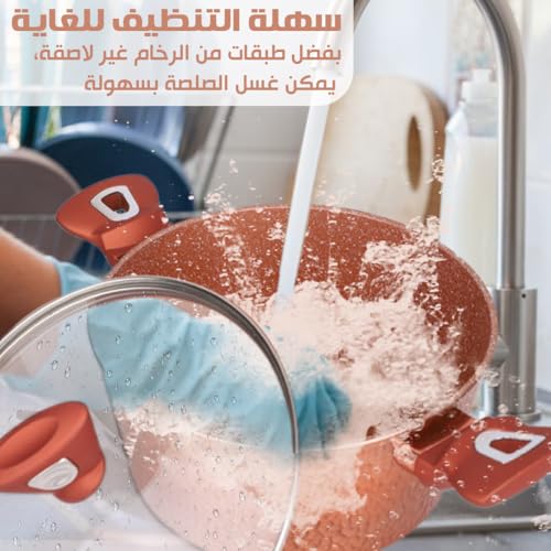 - سهلة التنظيف: استمتع بتنظيف خالٍ من المتاعب بتصميم يمنع الطعام من الالتصاق أو ترك بقع عنيدة.