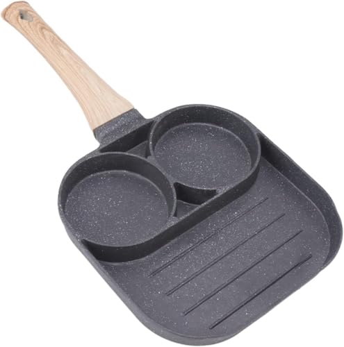 Generic - طاسة بان كيك جرانيت 3×1 بيد خشب – جريل متعدد الاستخدامات 3 عين لعمل البان كيك والبيض والعجة والقطايف – غير قابلة للالتصاق وتتحمل حرارة عالية – حل عملي لتنظيم المطبخ