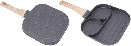 Generic - مقلاة فطور ثلاثية الاقسام من الجرانيت - مقلاة غير لاصقة 3 في 1 بمقبض خشبي لتحضير الفطائر والبيض والكريب والطبخ المقسم