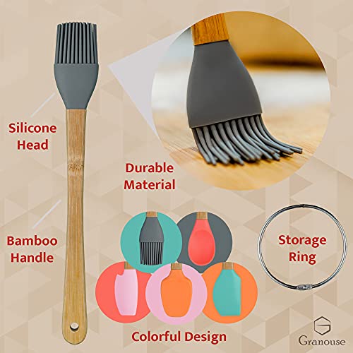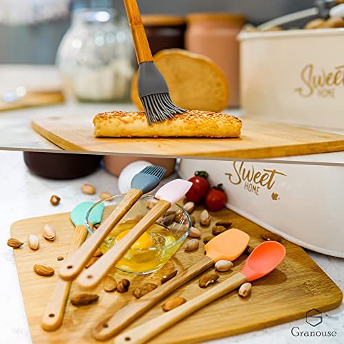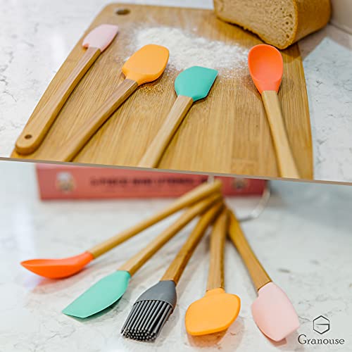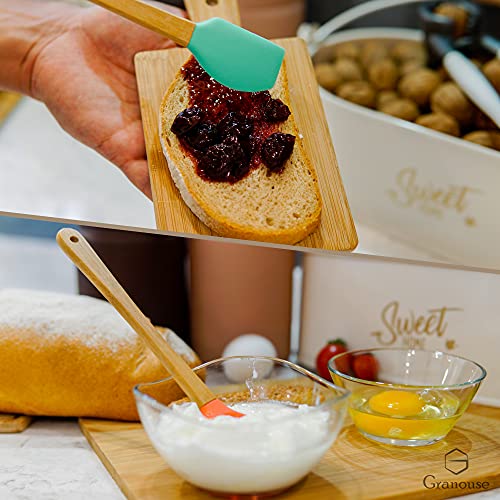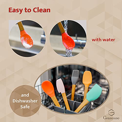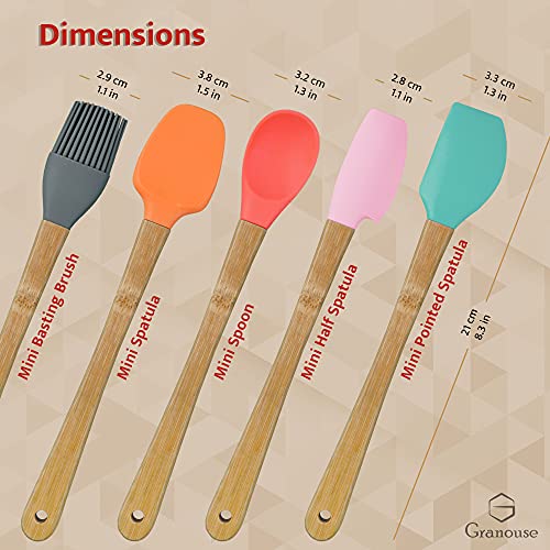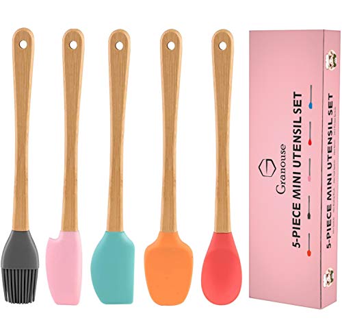 GRANOUSE - مجموعة معالق سباتولا صغيرة من السيليكون، ملعقة سباتولا سيليكون مطاطية مقاومة للحرارة العالية مع مقبض من الخيزران، أدوات مطبخ غير لاصقة للخبز والطبخ والخلط خالية من مادة بيسفينول أ من جرانوس (5 قطع)