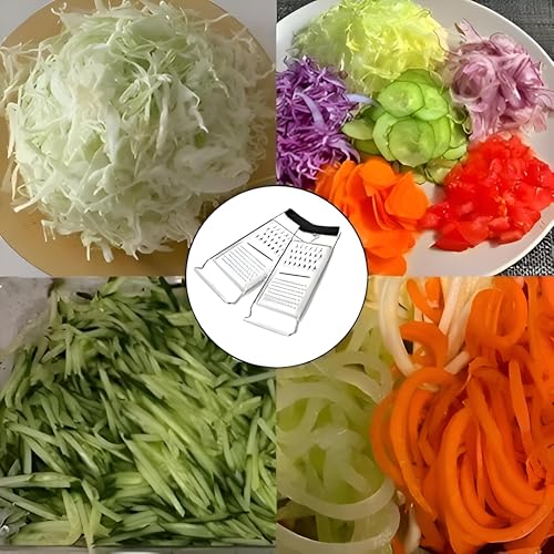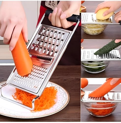 Generic - مبشرة - اداة مطبخ فاخرة متعددة الوظائف لتقطيع الجزر والبطاطس، مصنوعة من الستانلس ستيل المتين، تتميز بتصميم فضي انيق ومقبض اسود مريح