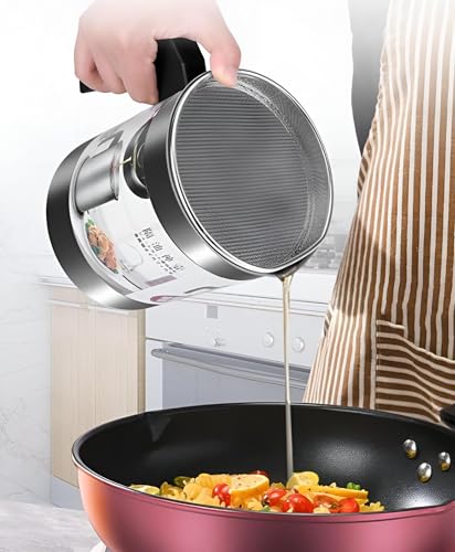 Generic - مصفاة زيت متعددة الاستخدامات من الفولاذ المقاوم للصدأ - وعاء دهون لسهولة تنقية زيت الطهي وضمان التخزين الآمن (قطعة واحدة)