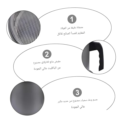 - مصممة كوعاء فلتر زيت عملي، وتتضمن مصفاة شبكية دقيقة قادرة على إزالة القطع الصغيرة والشوائب من المنتجات المطبوخة، مما يجعل إعادة استخدام الزيت أنظف وأكثر كفاءة للاستخدام لفترات طويلة في المطبخ.
