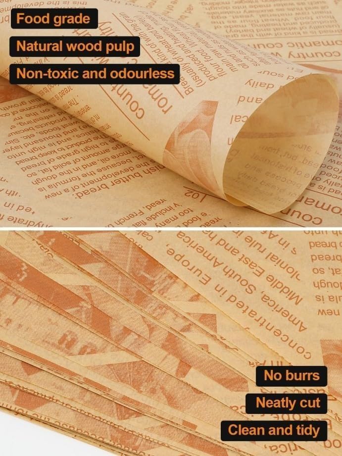 - المكونات: ورق معالج خصيصًا ليكون مقاومًا للشحوم ومقاوم للالتصاق وصديق للبيئة. كيفية الاستخدام، استخدم لتعبئة الوجبات مثل البرجر أو السندويشات. ضعه في صواني الخبز أو القلي لتجنب التصاق الطعام. يمكنك قصه حسب الحجم الذي تحتاج إليه.