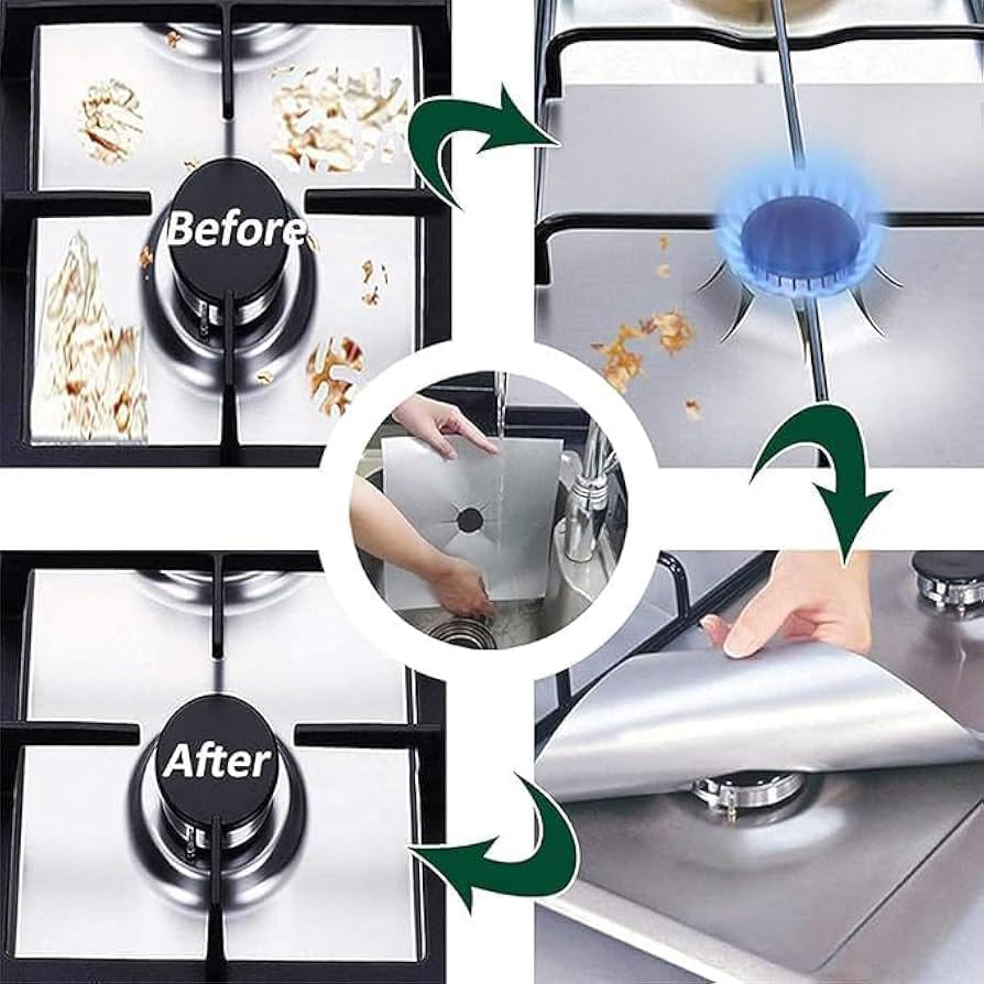 Generic - ورق فويل حراري مقاوم للدهون لحماية عيون البتوجاز – واقي ألومنيوم عملي للطبخ والنظافة – مقاس قابل للقص لجميع أنواع الشعلات$ (12)