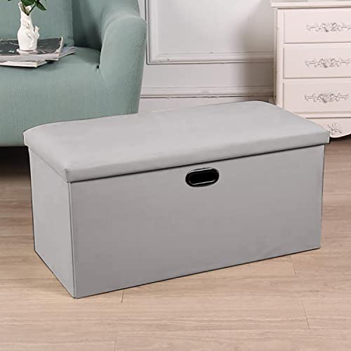 GREATOYAR - كرسي عثماني قابل للطي، كرسي تخزين قابل للطي من بلاستيك بي في سي، صندوق تخزين الألعاب، طاولة منخفضة لغرفة النوم من جريتويار، مقاس 76 سم × 38 سم × 38 سم، لون رمادي