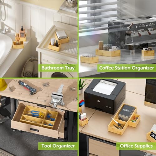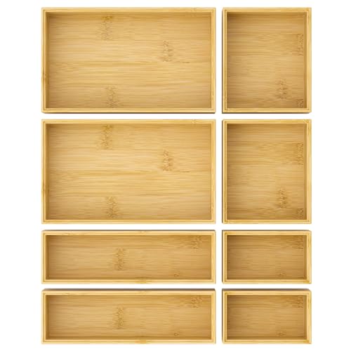 Greatseas - صواني تنظيم ادراج الحمام من جريت سيز منظم الخيزران ادوات المطبخ الفضية 8 قطع صناديق خشبية قابلة للتكديس لتنظيم الادراج للمكياج والمكتب وطاولة الزينة ودرج القمامة