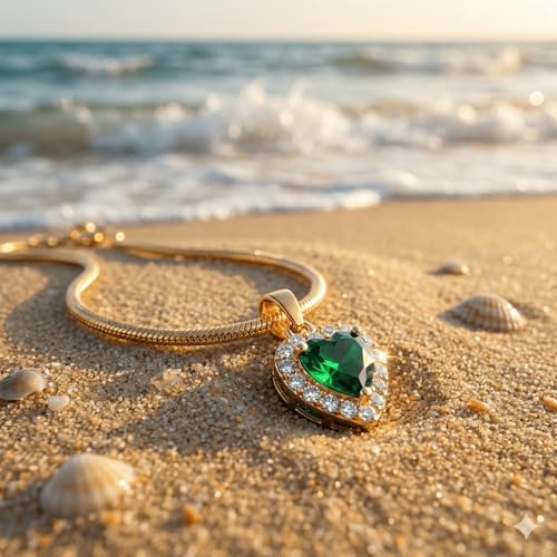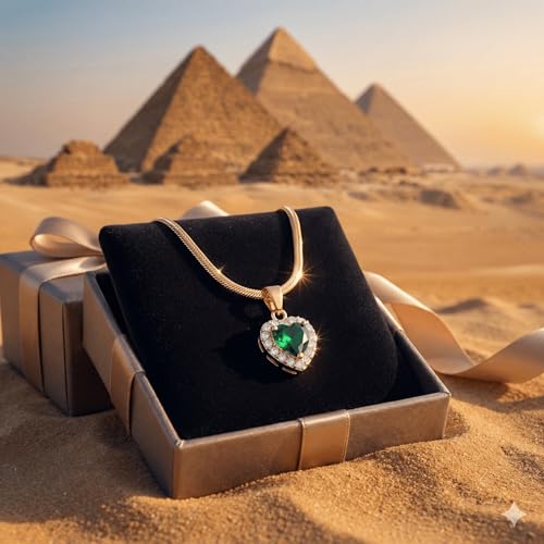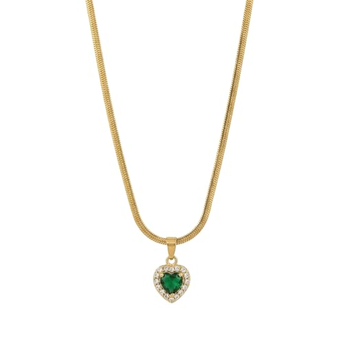 Generic - سلسلة "قلب الزمرد" الأخضر محاطة بالكريستال اللامع | مطلية بالذهب مع سلسلة أفعى مسطحة | مجوهرات فاخرة وهدية رومانسية كلاسيكية للنساء | من الاستانلس ستيل المقاوم للصدأ والبهتان