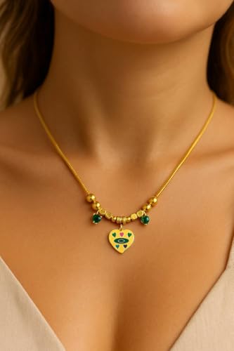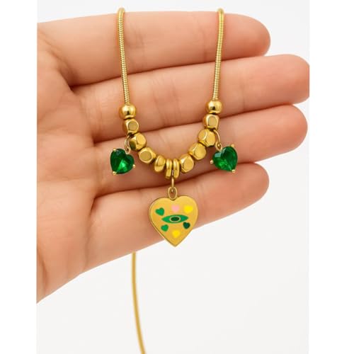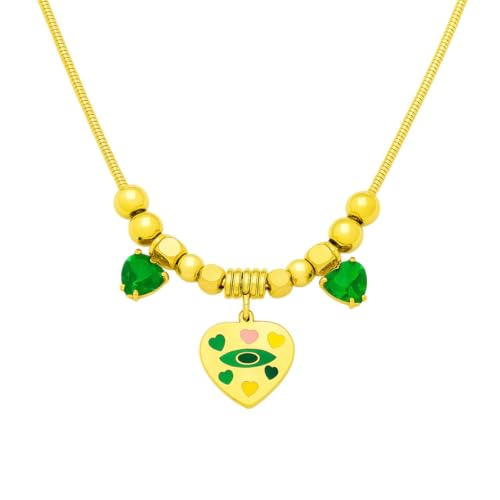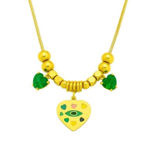 Generic - عقد بقلادة على شكل قلب اخضر - سلسلة ذهبية اللون مع دلايات كريستال خضراء هدية مجوهرات للنساء