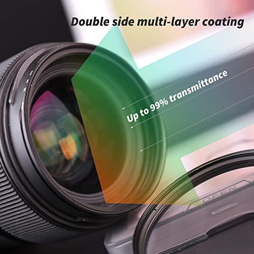 - صلابة الفلتر تصل إلى 9 اتش دي: أخضر. يمكن لفلتر الأشعة فوق البنفسجية أن يمنع الخدوش والغبار والبقع الزيتية وبصمات الأصابع والتلامس المباشر مع العدسة.