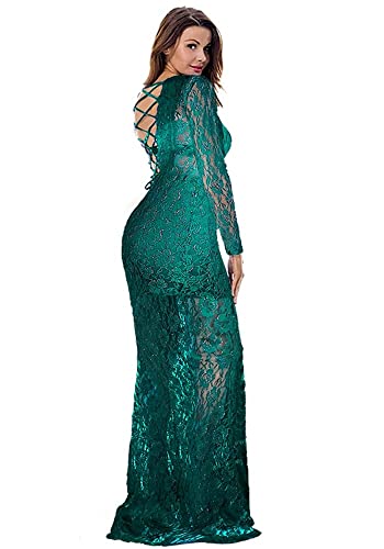 Generic - لانجيري دانتيل مفتوح من الخلف بتصميم واسع اسفل اخضر للنساء