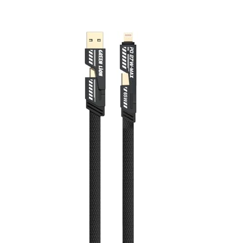 Green Lion - كابل 2 في 2 المجدول بمنفذي نوع سي إلى سي مع لايتنينج وUSB نوع ايه إلى سي بلايتنينج بدعم شحن سريع 65 وات وسرعة نقل بيانات 480 ميجابت /ث ومتوافق مع مختلف الأجهزة للشحن والمزامنة من جرين ليون - 1.2 م