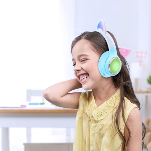 Green Lion - سماعة رأس لاسلكية للاطفال 400 مللي أمبير في الساعة، بلوتوث V5.3، تأثير ضوئي، أوضاع وميض، خفيفة الوزن ومحمولة، مدة الشحن أقل من ساعتين، شحن من النوع سي، بطاقة تي اف، ايه يو اكس (أزرق) من جرين ليون