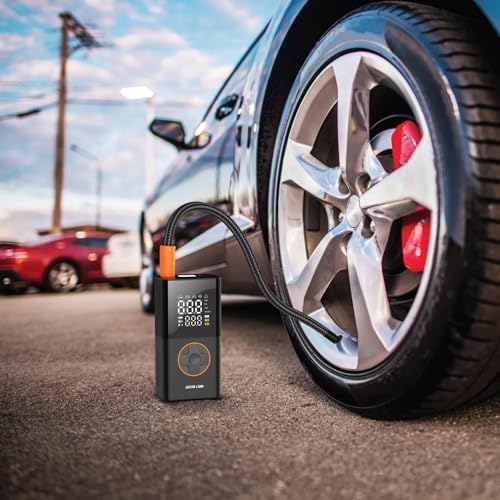 Green Lion - ضاغط هواء لاسلكي محمول 50 وات من جرين ليون مع شاشة رقمية وضوء ليد ومخرج USB و5 أوضاع للإطارات والدراجات والكرات وغيرها، ضغط 10 كجم لكل سم مربع وبطارية 2000 مللي أمبير في الساعة