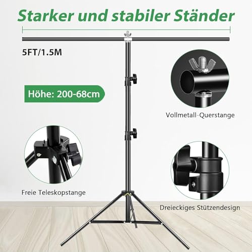 Generic - شاشة خضراء مع حامل 1.5 × 2 متر، شاشة خضراء مع حامل خلفية قابل للتعديل للتصوير الفوتوغرافي والبث والالعاب ومفتاح كروما