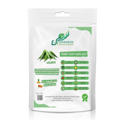 - بذور بامية خضراء طويلة: بذور عالية الجودة بنقاوة 90% مناسبة للزراعة المنزلية وإنتاج محصول وفير من البامية الطازجة