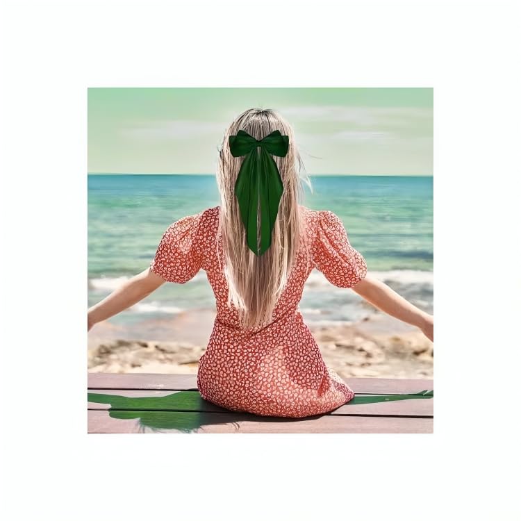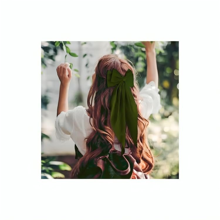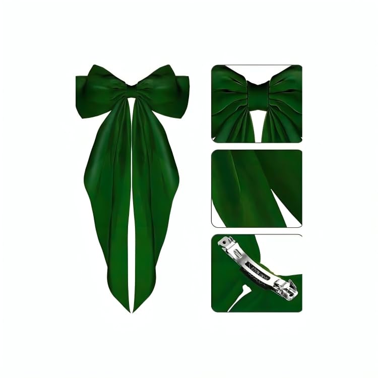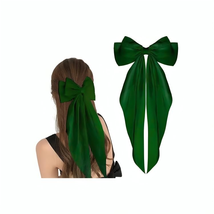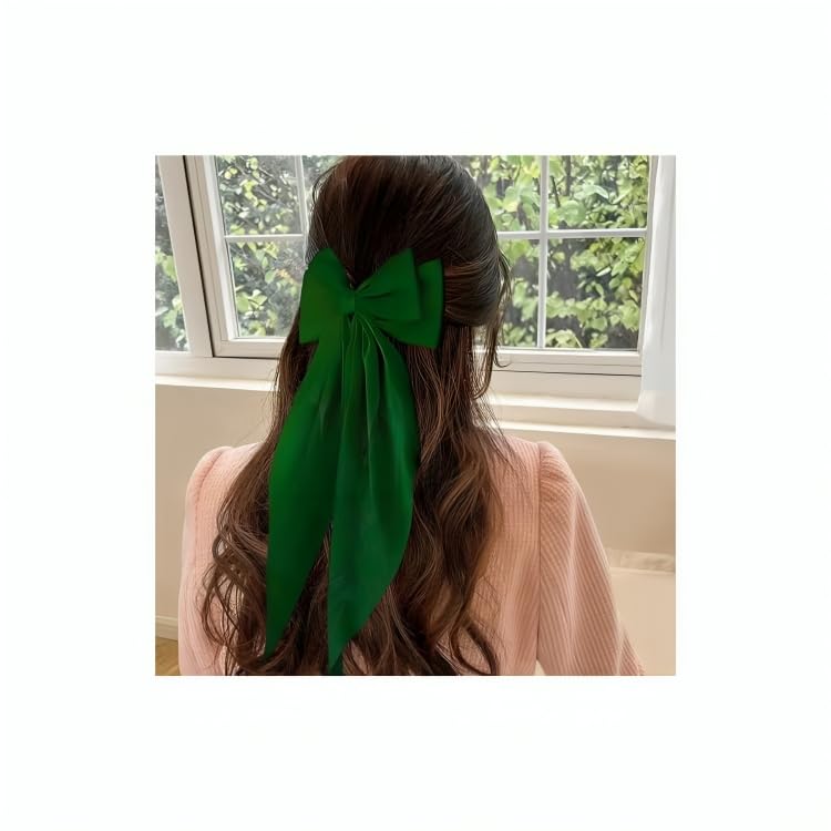 Generic - توكة مشبك فيونكة مصنوعة من الساتان باللون الاخضر