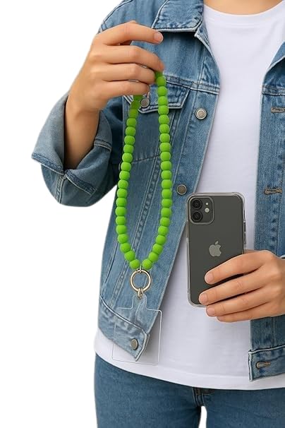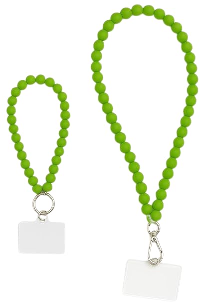 Generic - سلسلة موبايل سيليكون خضراء، طقم قصير وطويل متوافق مع جميع الهواتف، خرز ناعم مع مشبك معدني للتثبيت
