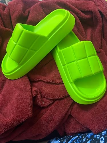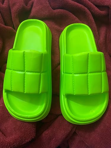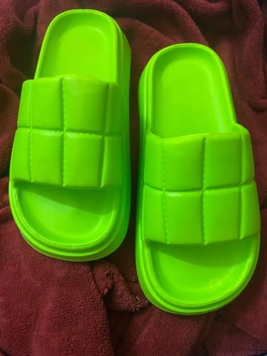 Generic - شبشب أخضر للنساء والبنات بنعل طبى ومريح - شبشب بتصميم مربعات - شبشب طرى - مثالي للبيت، الشاطئ والشارع - مقاوم للماء وغير قابل للانزلاق - فليب فلوب نسائي