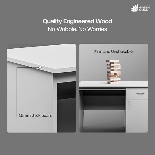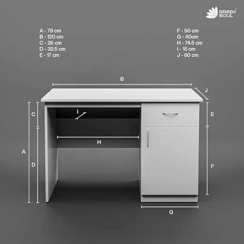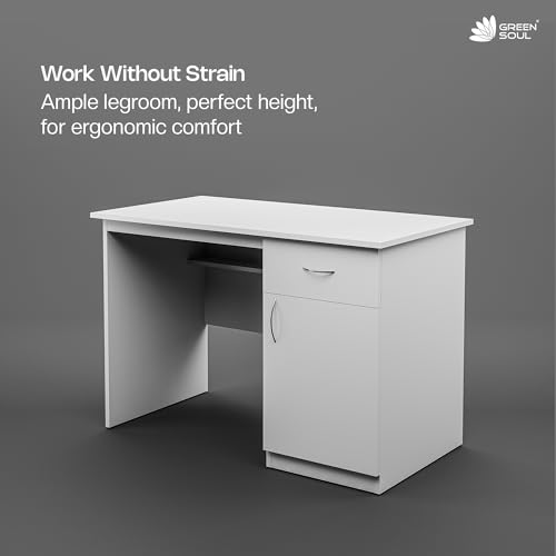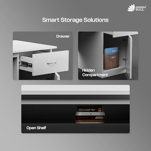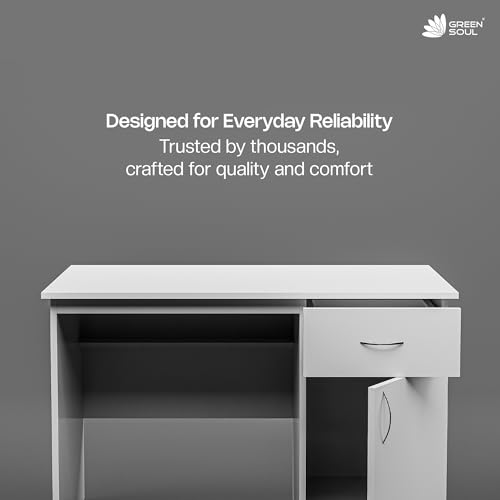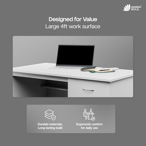 Green Soul - طاولة كمبيوتر للدراسة والمكتب من جرين سول فينيو | جودة عالية | خشب هندسي | ضمان 3 سنوات | مكتب كتابة للمحترفين | درج واحد وخزانة | مرفق التركيب (ابيض)