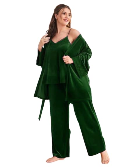 Generic - طقم قطيفة اخضر من 3 قطع للنساء