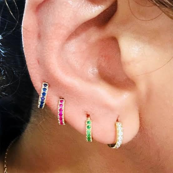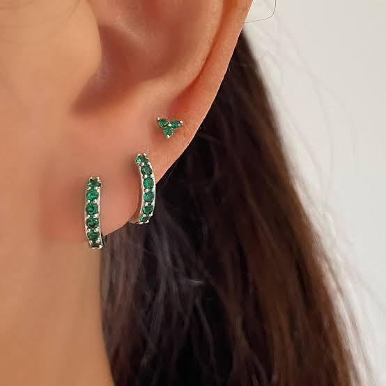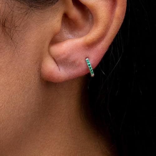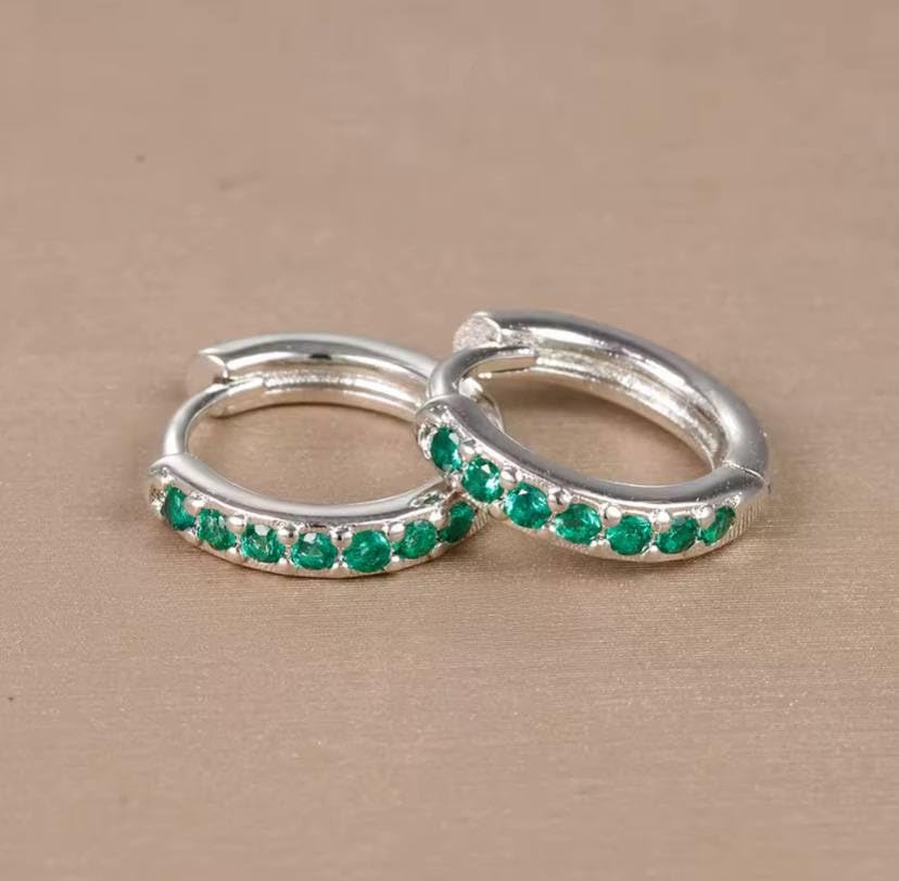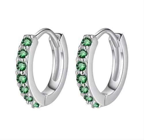 Generic - حلقان دائرية بسيطة عصرية مرصعة بزركون أخضر للنساء، مجوهرات حلقية أنثوية، فضي
