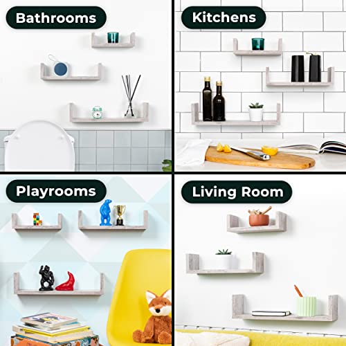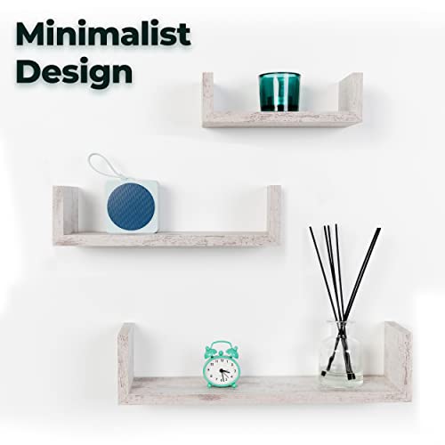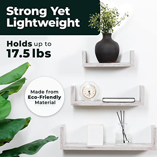 Greenco - جرينكو مجموعة من 3 ارفف عائمة على شكل حرف U للديكور، لمسة نهائية بلون ابيض ريفي.، خشب مُصنع