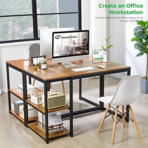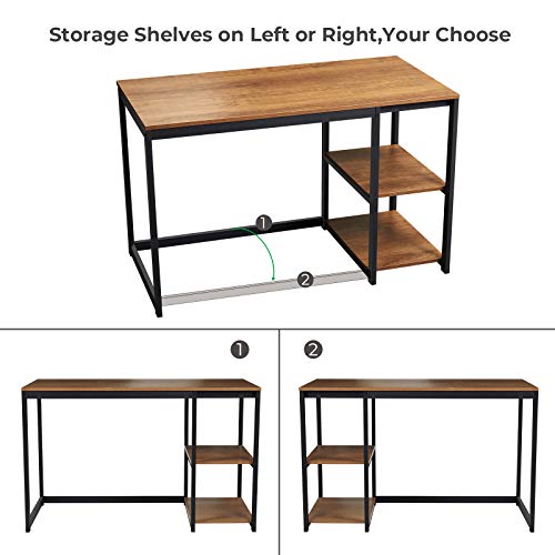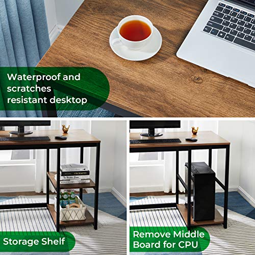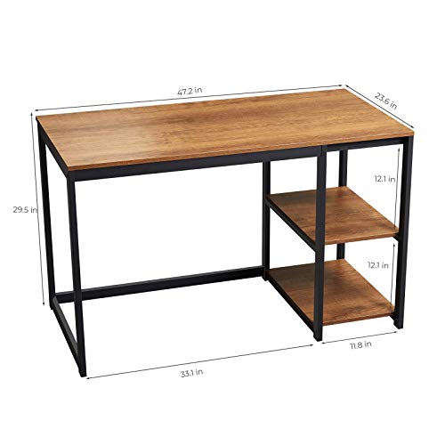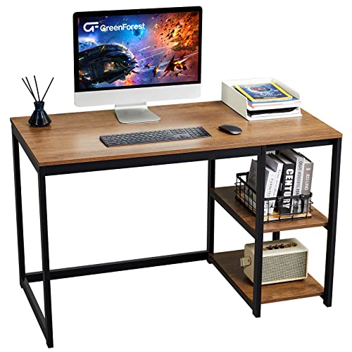 GreenForest - مكتب كمبيوتر مقاس 1.20 م مزود بمساحة تخزين، مكتب عمل منزلي مع بمستويين من الأرفف، مكتب بتصميم عصري للعمل على الكمبيوتر والدراسة والكتابة على اللاب توب من جرين فوريست، لون بني