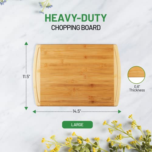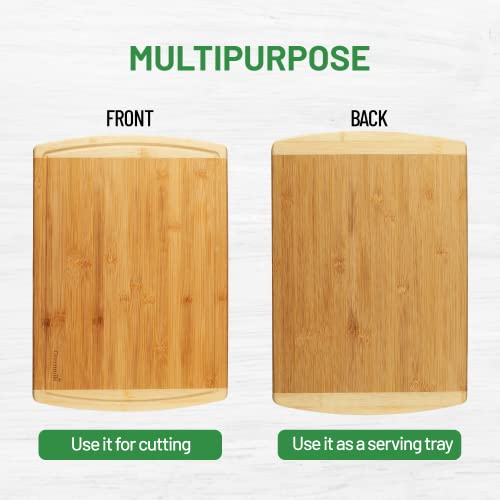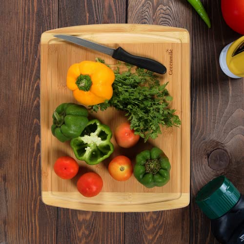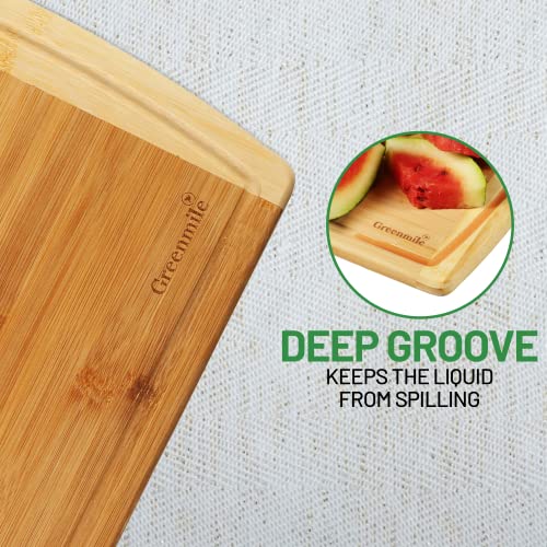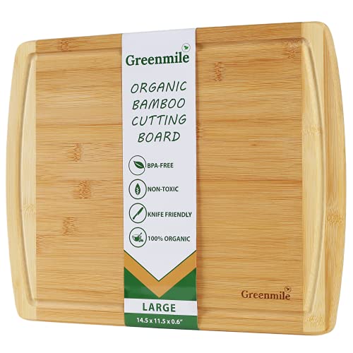 Greenmile - جرينمايل لوح تقطيع من الخيزران العضوي مع اخدود للعصير، لوح تقطيع خشبي كبير للمطبخ، لوح تقطيع خشبي ولوح نحت للخضروات واللحوم - 14.5 × 11.5 × 0.6 انش، كبير - قطعة واحدة
