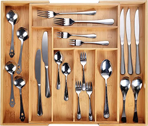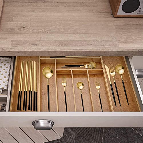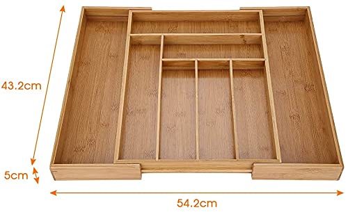 Greensen - صينية أدوات مائدة قابلة للتوسيع وقابلة للتعديل مع 8 أقسام مقسمة لأدراج المطبخ ذات سعة كبيرة للأدراج 54×43×5 سم