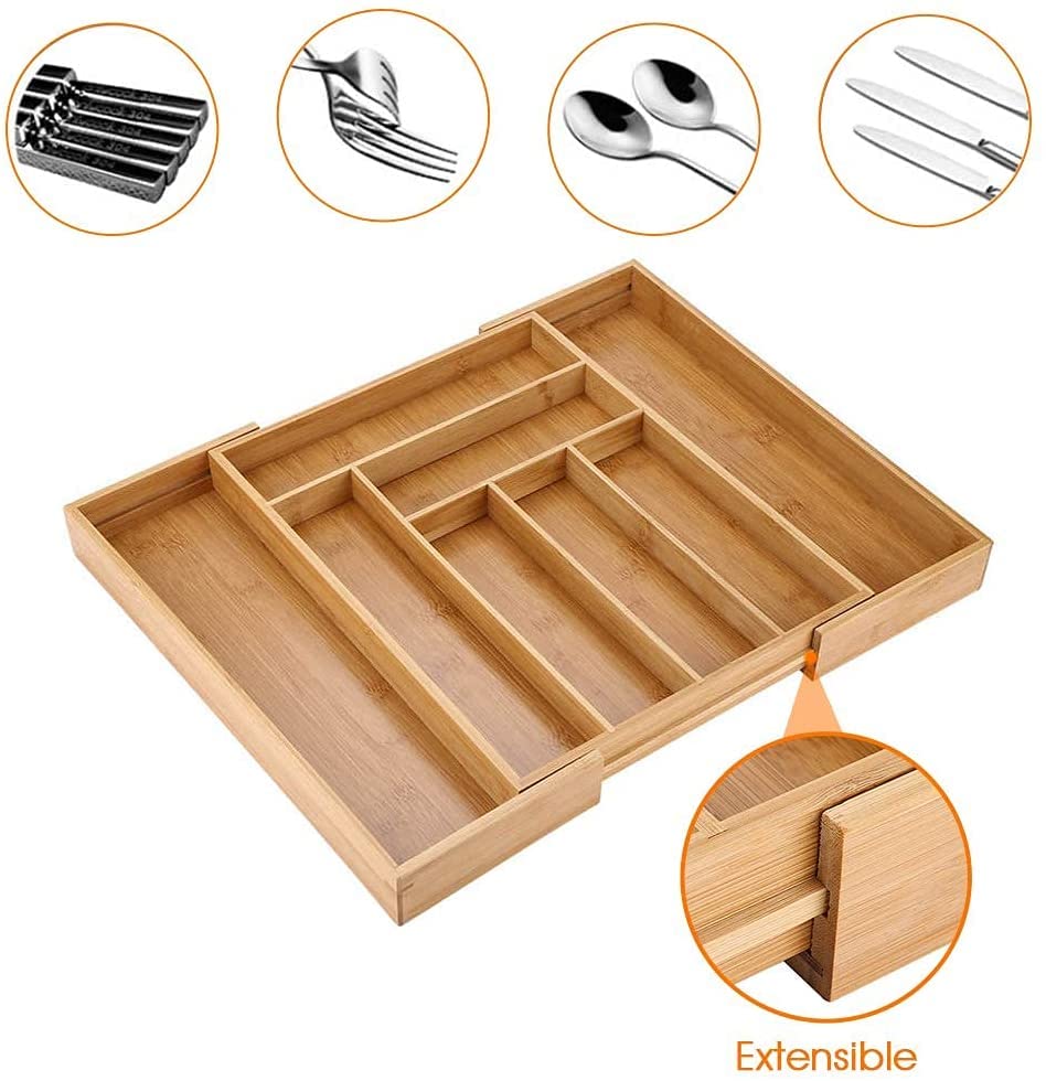 - سهل التنظيف: متين وسهل التنظيف، فقط افركه بالماء الدافئ. المادة - الخيزران ليس طبيعيًا وجميلًا فحسب، بل من السهل جدًا الحفاظ على نظافته. عند فردها بالكامل، يمكنك حتى استخدام 8 مساحات تخزين - هناك أيضًا مساحة لسكاكين الطاولة الطويلة وأدوات الطبخ