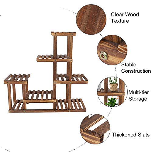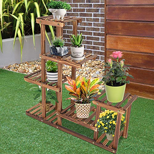 Greensen - رف تخزين وحامل من خشب بـ 6 طبقات لعرض النباتات، رفوف حديقة للنباتات في الاماكن الخارجية وعرض مزهريات الزهور والنباتات