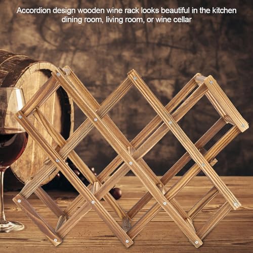 Greensen - جرينسن رف عرض خشبي للنبيذ، حامل نبيذ خشبي قابل للطي لـ 10 زجاجات، تصميم اكورديون انيق للمطبخ وغرفة الطعام وغرفة المعيشة