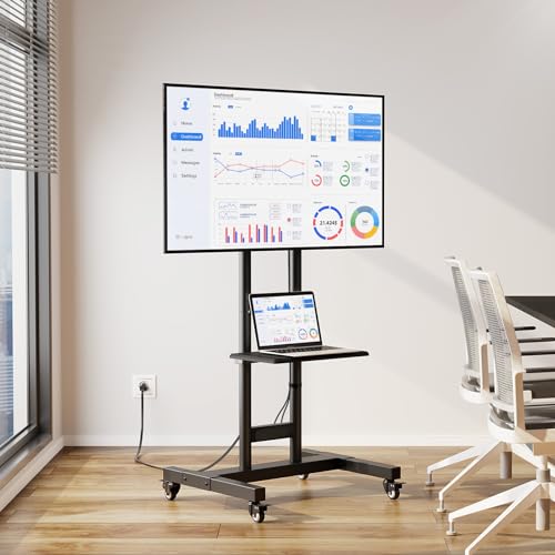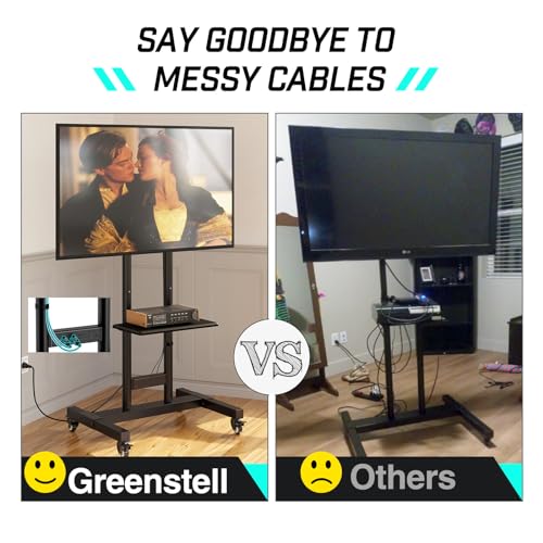 Greenstell - حامل تلفزيون متحرك بعجلات مناسب لشاشات LED LCD مقاس 32-85 بوصة من جرينستل، بمشترك كهرباء مع رف فيديو، بمقاس فيسا 600×400 ملم كحد اقصى، يتحمل حتى وزن 132 رطل