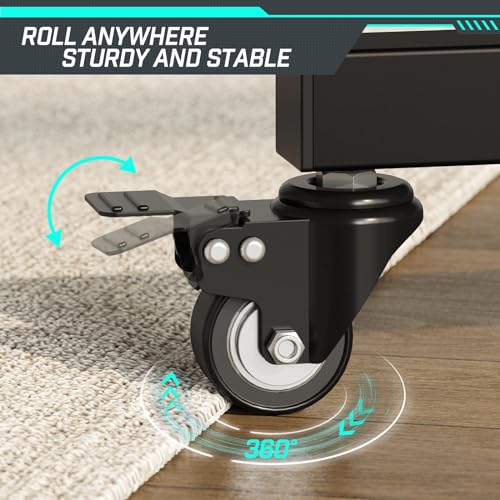 - 【حامل تلفزيون طويل متحرك】 تتميز القاعدة بـ 4 عجلات توفر حركة سلسة على الأرضيات الخشبية الصلبة والسجاد. جميع العجلات مغلقة بسهولة لضمان السلامة. والعجلات المصنوعة من مواد البولي يوريثين عالية الجودة لن تصدر ضوضاء عالية