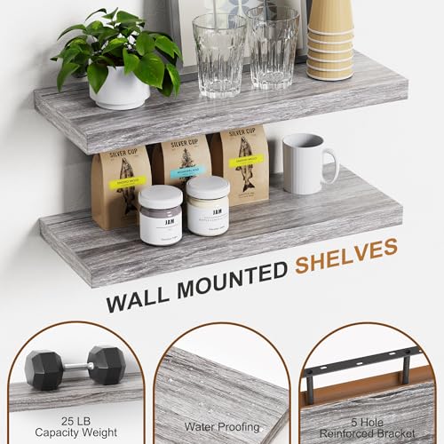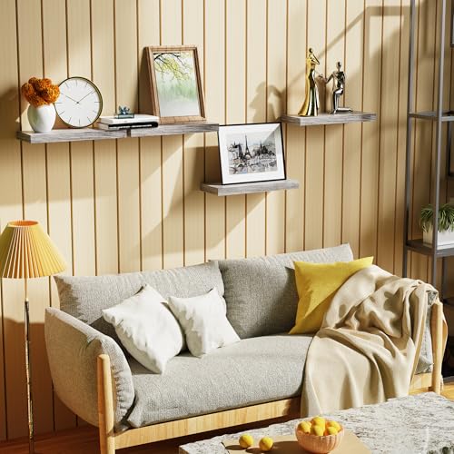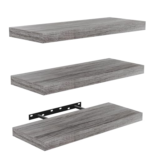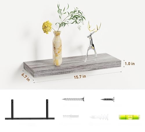 Greenual - ارفف عائمة للحائط من جرينوال، مجموعة رفوف حائط خشبية رمادية من 3 قطع، رف عائم يثبت على الحائط مقاس 16 انش للمطبخ (15.7 × 6.7 × 1 انش)