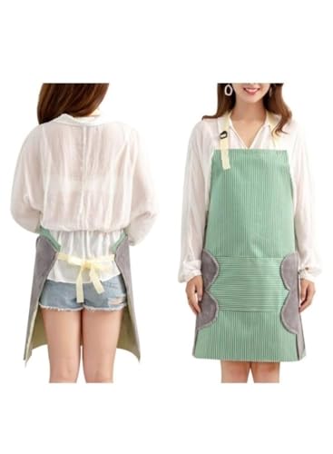 Spaceshoop - - مريلة مطبخ للجنسين مخططة مقاومة للماء وقابلة للتعديل مع جيوب لمسح اليد من جرين لاغراض الطبخ والخبز