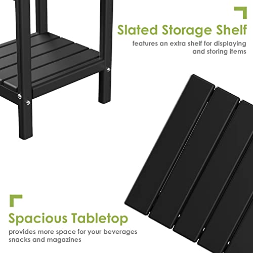 GREENVINES - طاولة جانبية اديرونداك للاستخدام الخارجي مقاس 35.5 سم × 33 سم مصنوعة من بلاستيك البولي ايثيلين عالي الكثافة مناسبة لجميع الأحوال الجوية مع رف تخزين لجانب حمام السباحة وغيرها الكثير من جرينفينز (أسود)