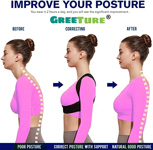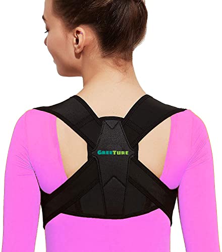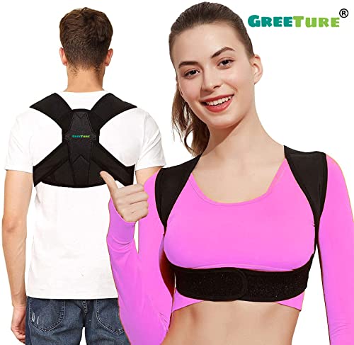 GREETURE - مصحح وضعية الجسم للنساء والرجال من جريتشر، حزام قابل للتعديل للجزء العلوي من الظهر، ودعامة للظهر بتصميم مُزود بمسامات تهوية، ويخفف الآلام في الرقبة والكتفين والترقوة والظهر، (مقاس واحد)، غير سام
