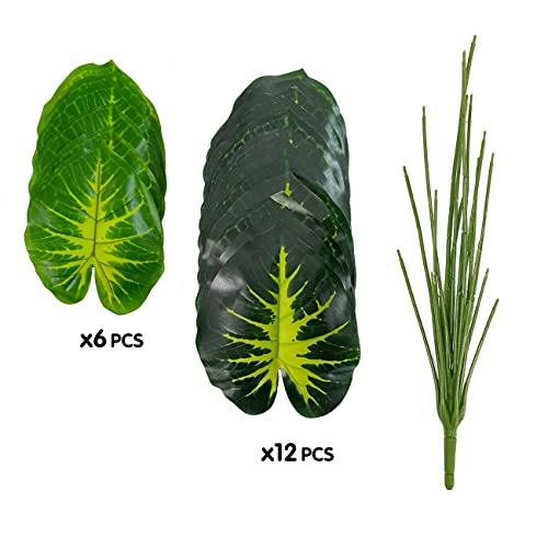 Greflou - نبات مونستيرا صناعي مقاس 25 انش من جريفلو، اوراق نخيل استوائية كبيرة لتزيين المنزل الداخلي والخارجي (لون اخضر)، متعدد الالوان