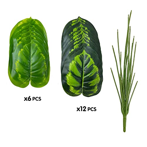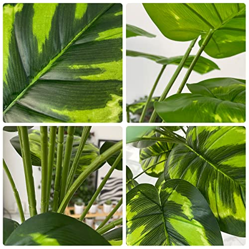 Greflou - نبات مونستيرا صناعي مقاس 64 سم (25) من جريفلو، أوراق نخيل وهمية وأوراق موز استوائية كبيرة لديكور المنزل الداخلي والخارجي (لون أخضر طاووس)